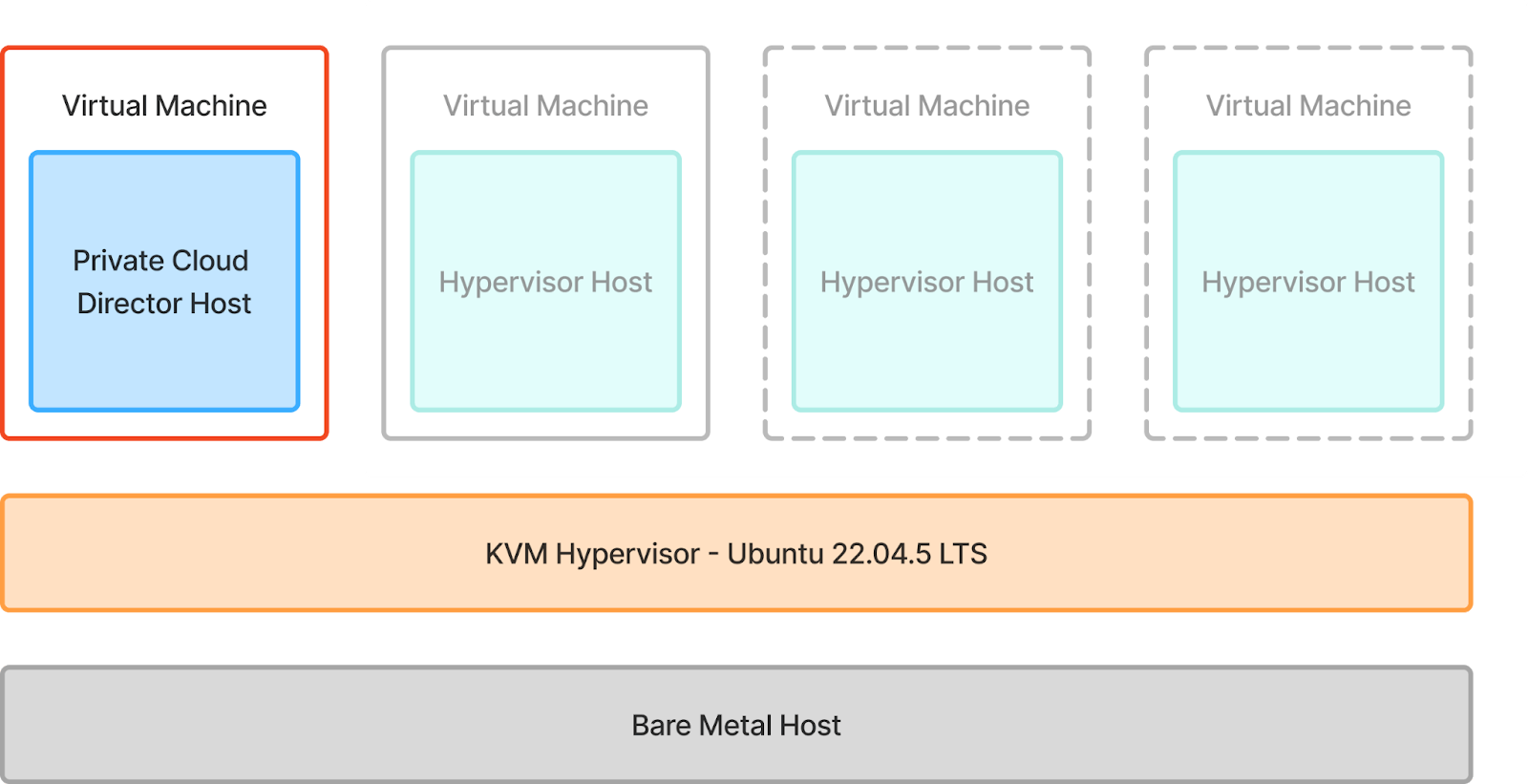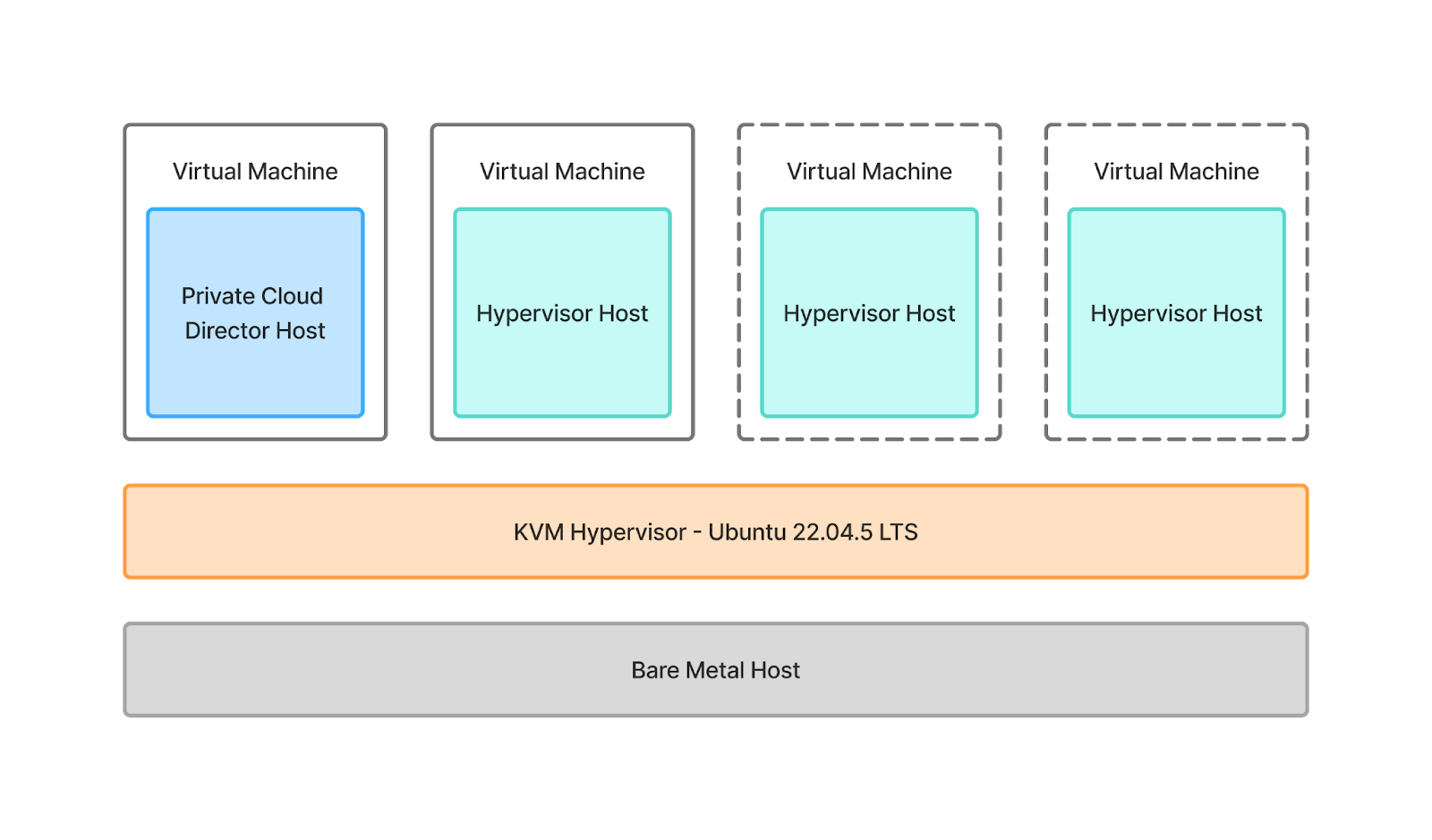 This version of Private Cloud Director is awesome for testing stuff out or if you're just starting small. You can deploy it on a bare-metal setup or inside a virtual machine. The infrastructure and workload regions run on the same VM, but a separate hypervisor host is needed. This can run as a VM alongside CE if needed. This guide will use a single bare-metal host to run the necessary VMs. Check out the official docs to learn more about Private Cloud Director Community Edition.