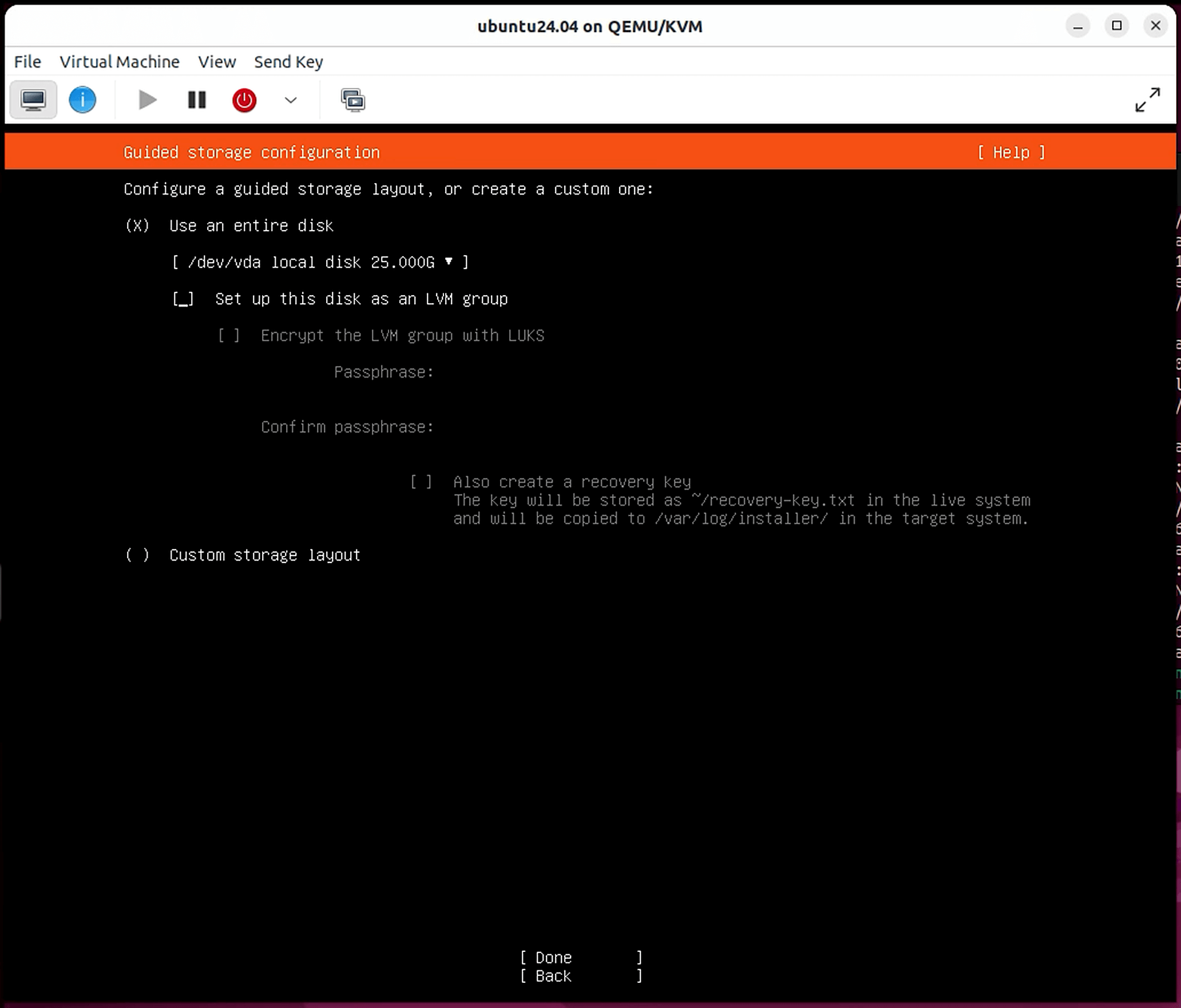 Follow the prompts till you reach the Guided storage configuration screen. For simplicity, uncheck LVM under the storage configuration menu