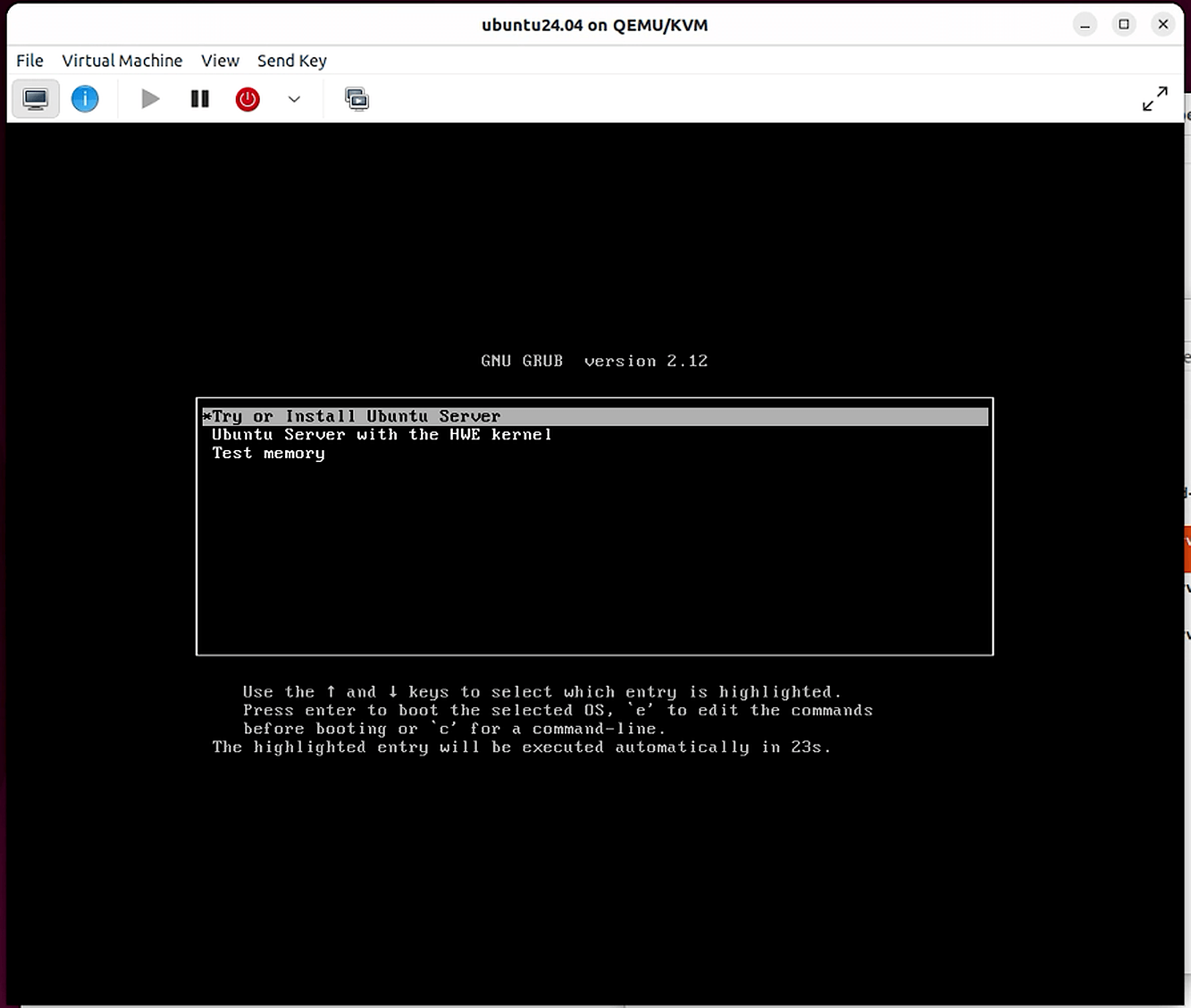 Launch the VM, and follow the prompts to install Ubuntu Server.