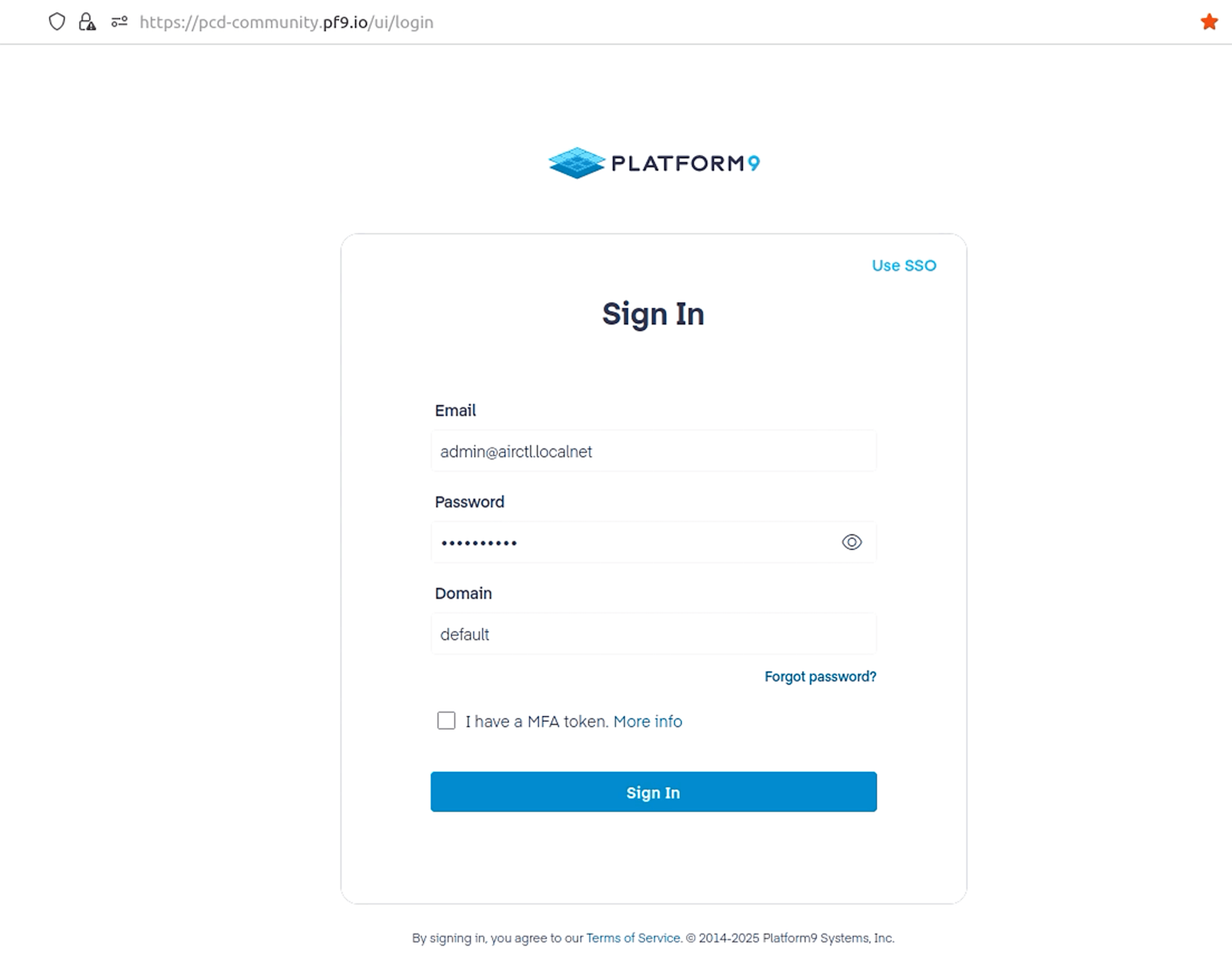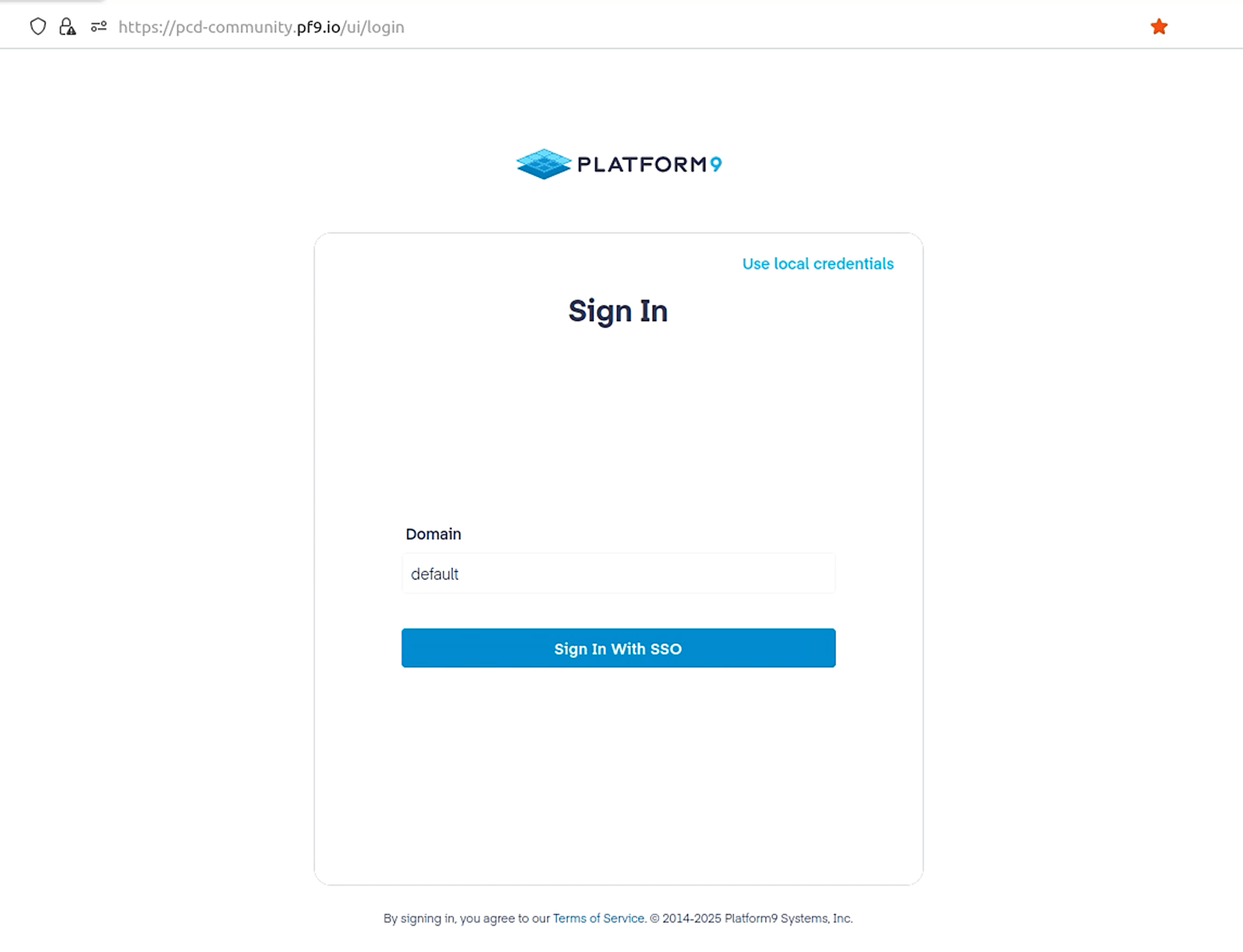 From the Ubuntu Desktop environment, navigate to pcd-community.pf9.io