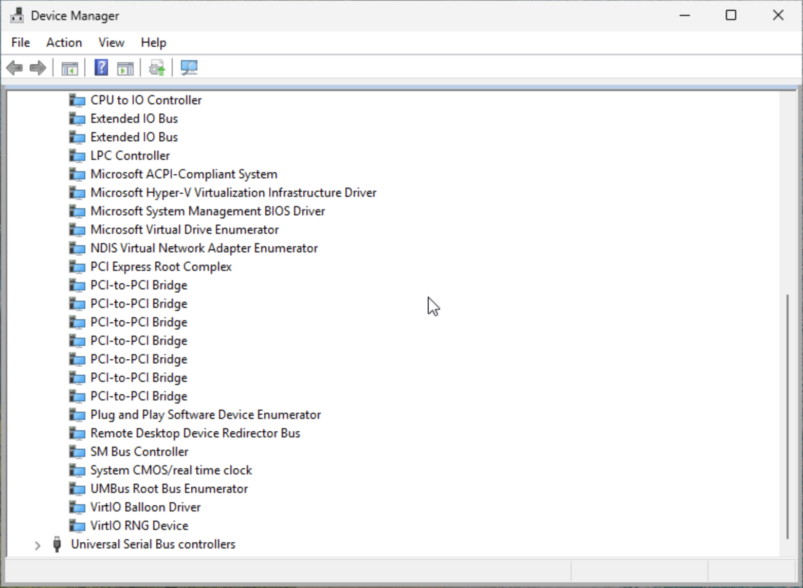 - Access Device Manager and then navigate to System devices > VirtIO driver.