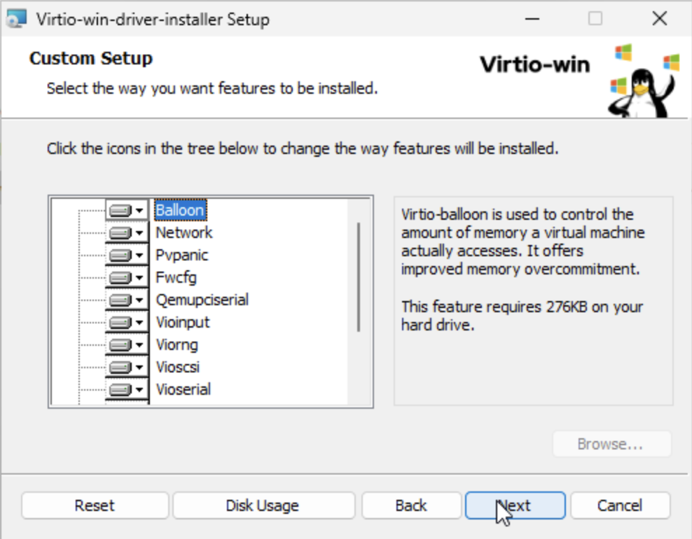 - Download the VirtIO setup package from Index of /groups/virt/virtio-win/direct-downloads.