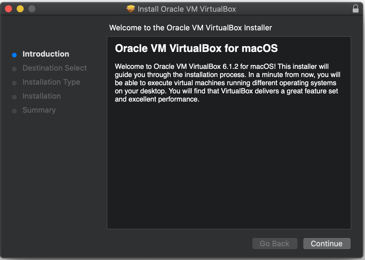 The first is to download the latest edition of VirtualBox for your platform. At the time of this writing it is version 6.1.2 for Mac OS