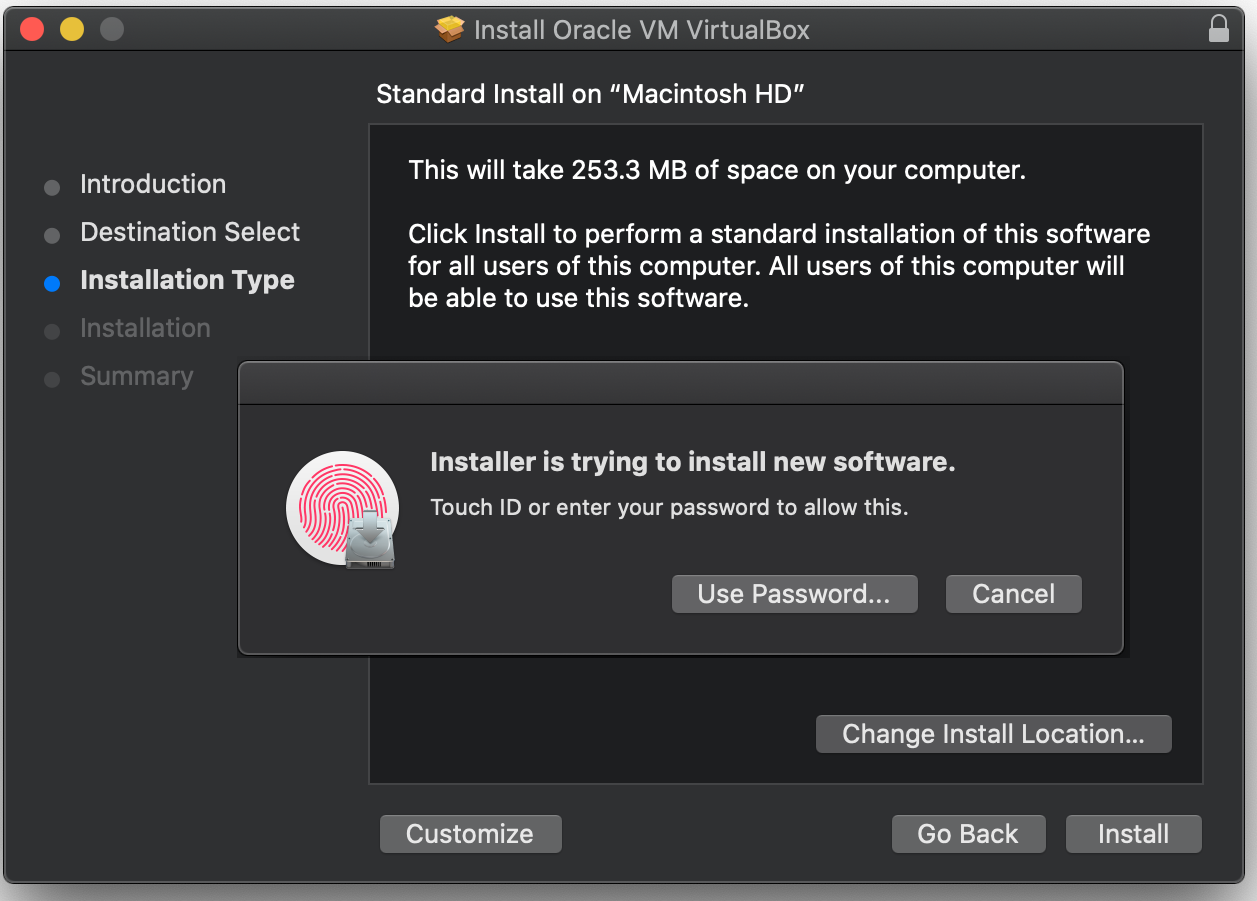 ~ % brew cask install virtualboxUpdating Homebrew...==> Auto-updated Homebrew!Updated 1 tap (homebrew/cask).No changes to formulae.==> CaveatsTo install and/or use virtualbox you may need to enable its kernel extension in: System Preferences → Security & Privacy → GeneralFor more information refer to vendor documentation or this Apple Technical Note: https://developer.apple.com/library/content/technotes/tn2459/_index.html==> Downloading https://download.virtualbox.org/virtualbox/6.1.2/VirtualBox-6.1.2-135662-OSX.dmg######################################################################## 100.0%==> Verifying SHA-256 checksum for Cask 'virtualbox'.==> Installing Cask virtualbox==> Running installer for virtualbox; your password may be necessary.==> Package installers may write to any location; options such as --appdir are ignored.Password:installer: Package name is Oracle VM VirtualBoxinstaller: choices changes file '/var/folders/s2/yg_q89zd1xx14mq8fv1bshpc0000gn/T/choices20200123-15967-1nzasnl.xml' appliedinstaller: Upgrading at base path /installer: The upgrade was successful.==> Changing ownership of paths required by virtualbox; your password may be necessary🍺 virtualbox was successfully installed!Step 2: Retrieve Ubuntu LTS