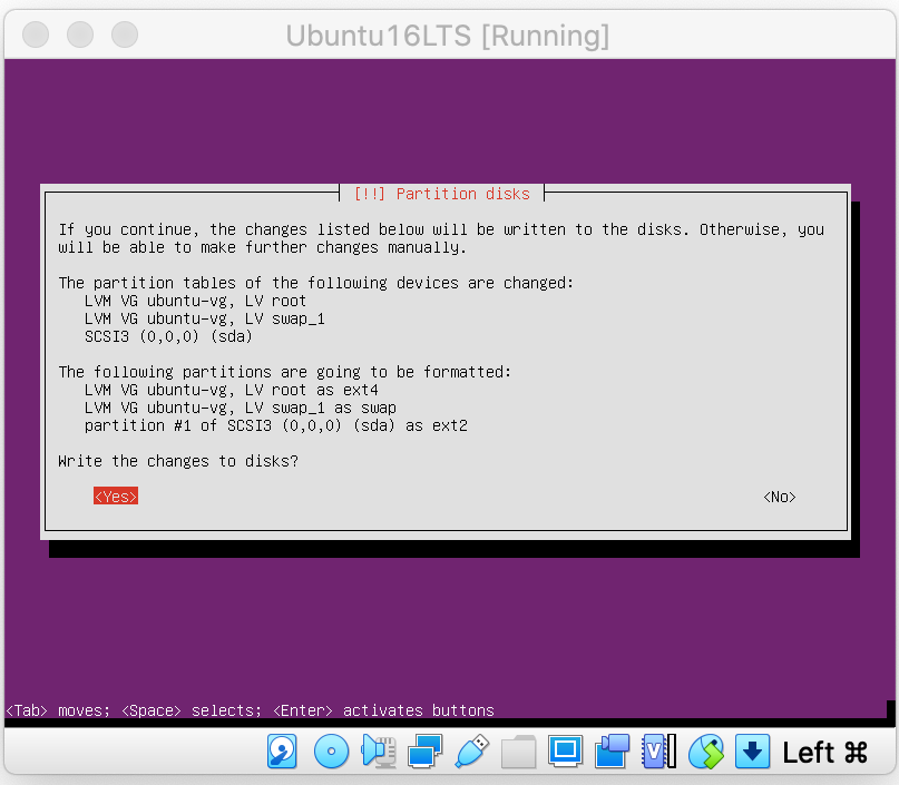 The screen after it will require you to select “Yes” to write the changes to the disk. The default is “No,” so you can’t just blindly continue.