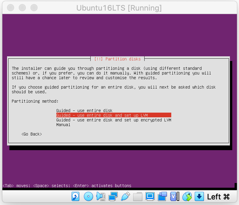 You can accept the defaults for the next few screens including ‘not to encyrpt the home directory,’ since it is a test box; and, ‘to use LVM for disks’.