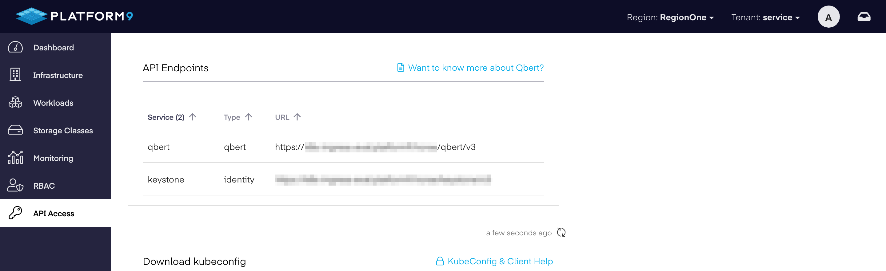 You can locate the URL for the Qbert API endpoint specific to your PMK deployment by navigating to API Access → API Endpoints in the PMK UI.