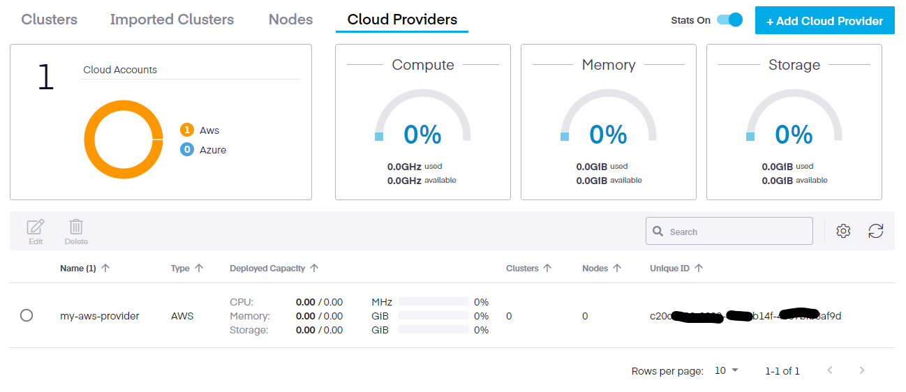 "Complete" to create your new cloud provider and be directed back to the cloud providers listing.