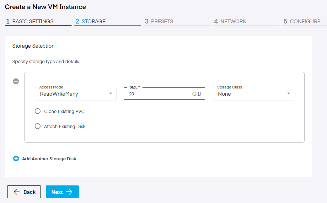 User also have the option to Clone an Existing PVC or Attach an Existing Disk.