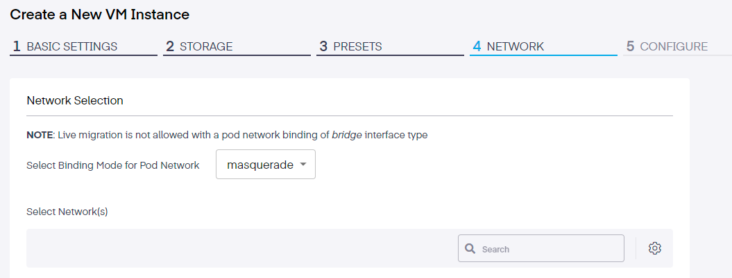 - Masquerade - In this mode, KubeVirt allocates internally NAT'd IP addresses to the image